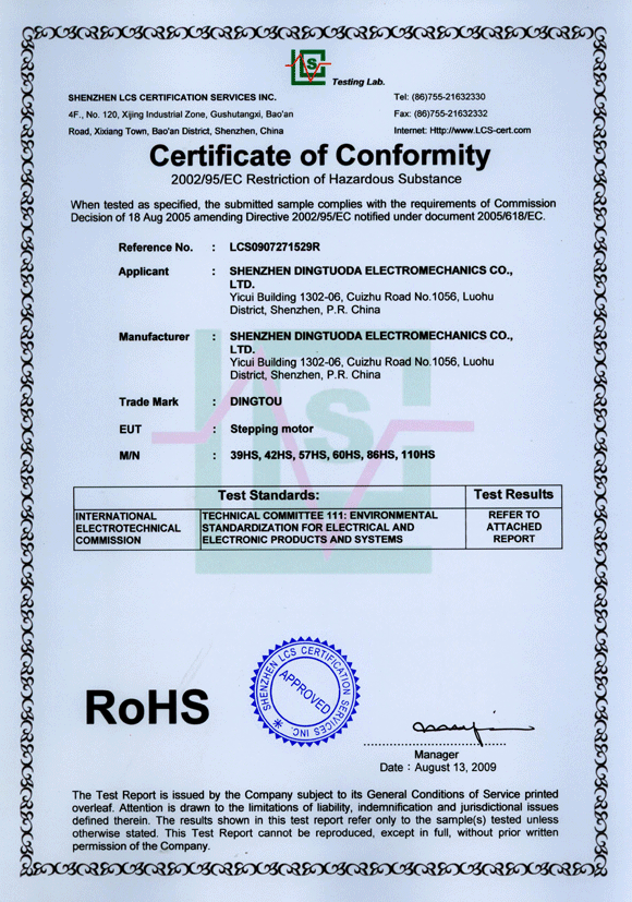 首頁(yè)->產(chǎn)品認(rèn)證->步進(jìn)電機(jī)RoHS認(rèn)證證書(shū)