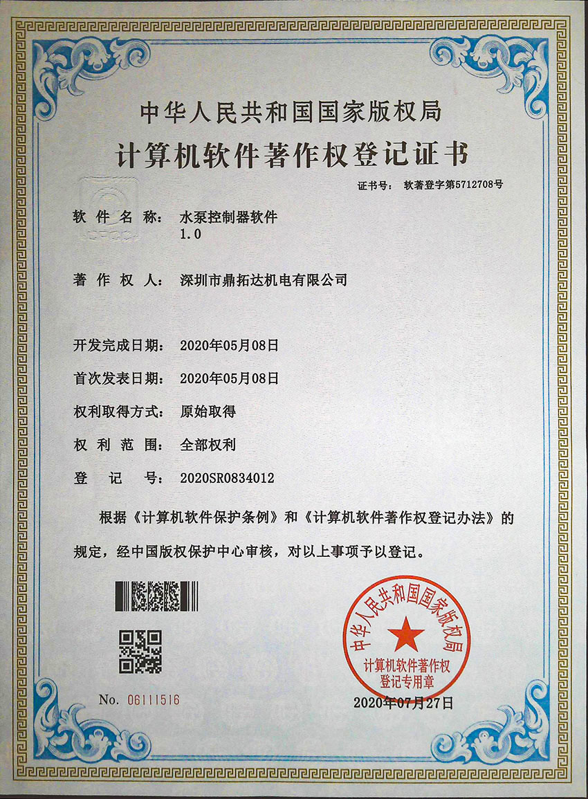 首頁->產(chǎn)品認(rèn)證->水泵控制器軟件證書